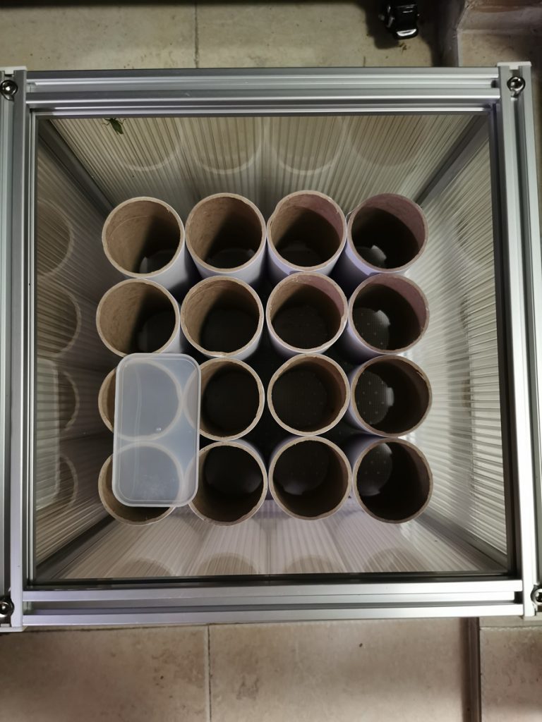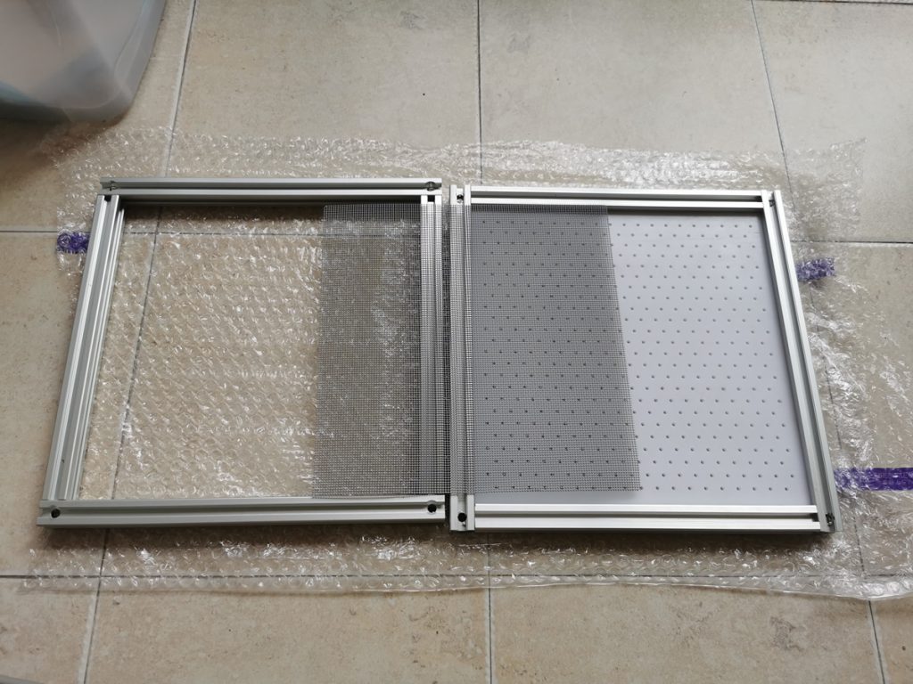本来以为下面是全网的,可以省点心思清理蟋蟀粪便。结果是亚力克打孔底板,应该蛮能积攒粪便的,需要定期清理。网是直接放在白色底板上的。