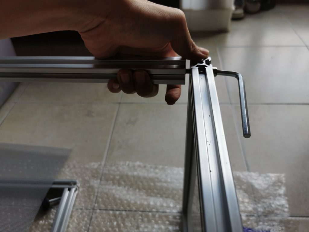 上立柱,过程很舒畅。爱滴魔力转圈圈~一会儿就装好了,这里要注意上紧前一定要调整方形管的角度。