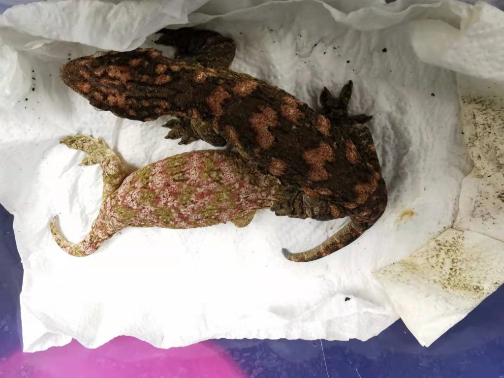 视频一家人住在主岛南部靠近Koghis山经营着一家山道滑索项目,这是他们发现的一只野生巨人守宫成体,很可能是MTK品系。