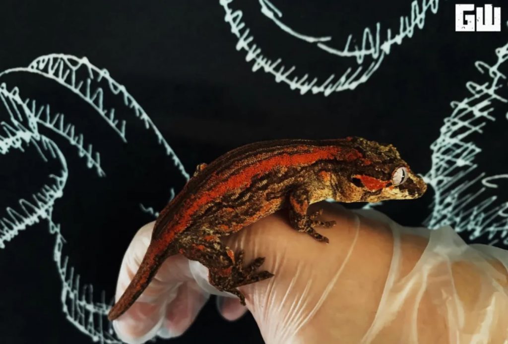 石像鬼壁虎(Rhacodactylus.auriculatus)是Rhacodactylus属第一位成为爱好者的成员。我们平常习惯叫它盖勾亚守宫,最早的纪录是上世纪七十年代欧洲人首次购买了它们。其中firs的人工繁育后代在八十年代中期到达美国,而在1987年Tim.Tytle首次在美国进行了繁育。其中第一批进口的也是最经典的棕褐色网纹状。