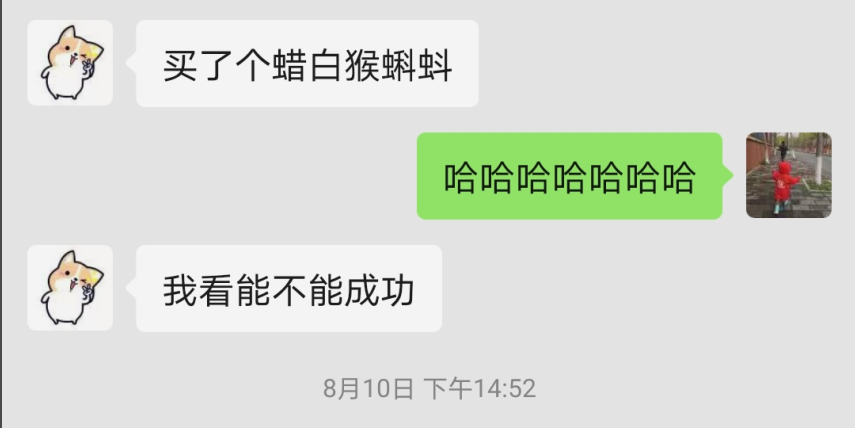8月份的时候和JIE小帅哥聊天,小帅哥表示中毒蜡白猴,立志要从蝌蚪养到蛙鸣。