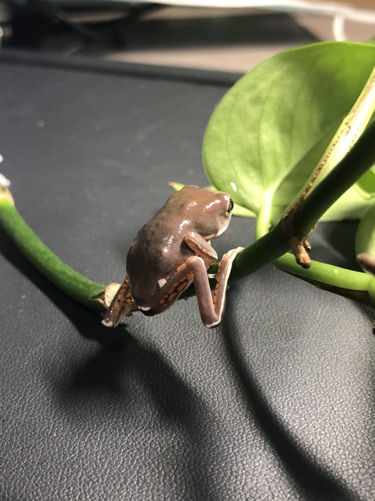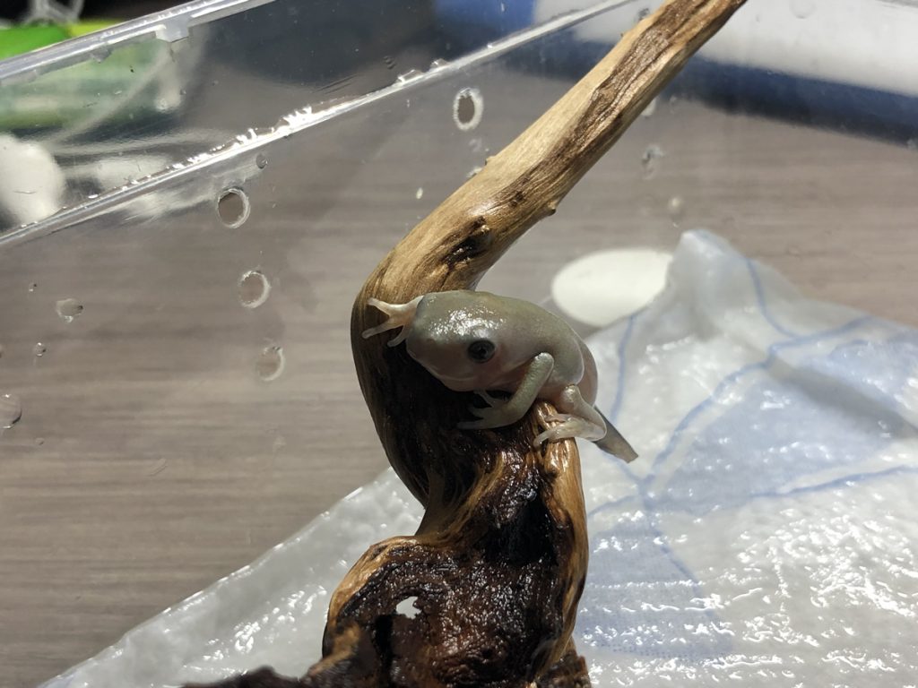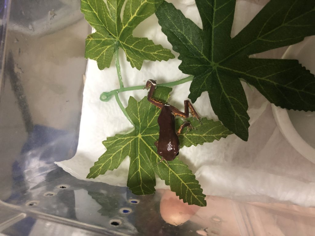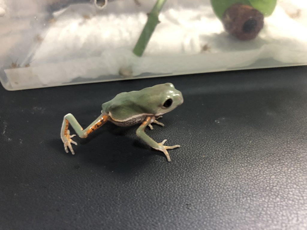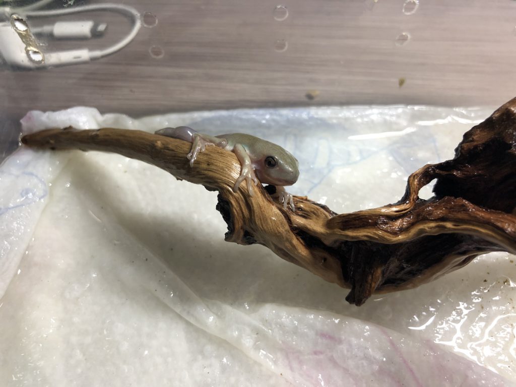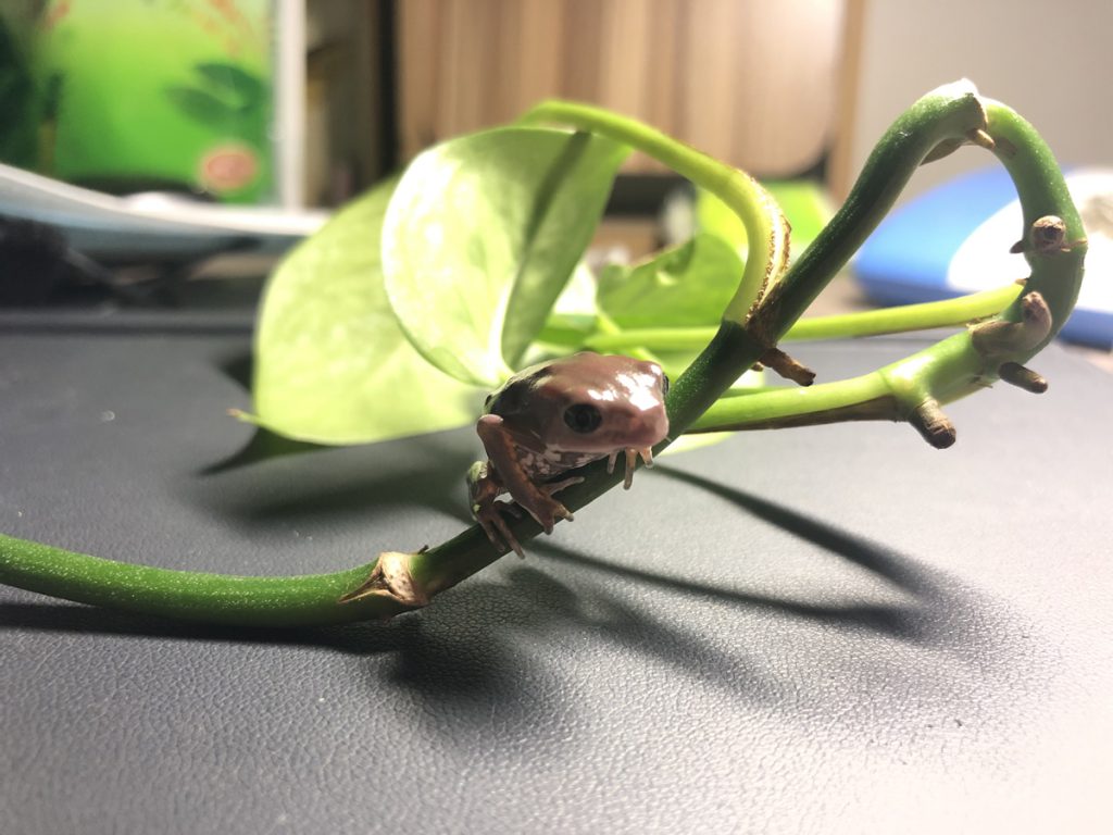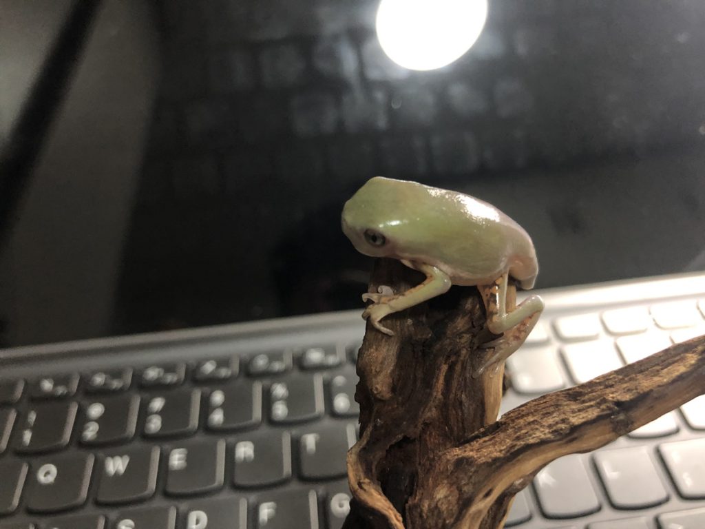 前腿儿出的相对慢一些,小帅哥一个不小心就发现已经是青蛙形态了~没拍到过程图不管他本人想不想拍大腿,Jam是腿都拍红了!