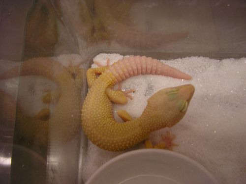这种基因定义上稍难理解。在豹纹守宫中,巨人豹纹和Mack Snow(白雪)都属于等位显性基因,也就是说,它们的基因可以直接被下一代所继承,不管是隐性的还是显性的。例如:Mack Snow在和普通种豹纹或者白化豹纹交配后,子代都会继承Mack Snow的白色特征,这是很独特的地方。当这种等位显性基因突变时,就会产生超级效果,就是我们所说的超级巨人和超级白雪(Super Mack Snow)。