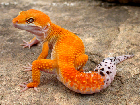 能体现出来基因特征的基因叫做显性基因。在豹纹守宫的基因里显性基因有:高黄(Hi-yellow),橘化(Tangerine),萝卜尾(Carrot tail),萝卜头(Carrot head)等等,含有这些基因的个体可以被子代所继承并且表现出来。例如:一只雄性的橘化萝卜尾豹纹和一只雌性的萝卜尾豹纹交配,下一代的子代同样会继承亲代的特征,表现为橘化,萝卜尾的。