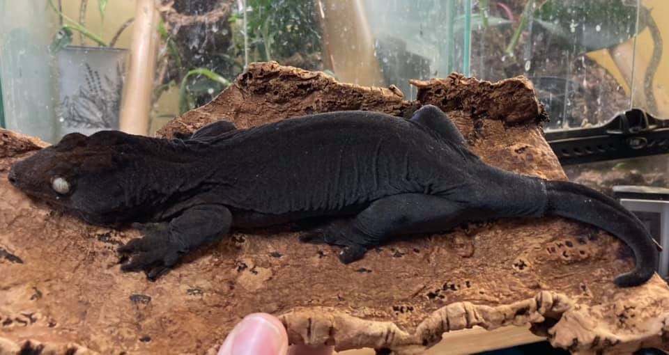 还有一只黑色无纹巨人也很惊艳, 不过应该不是黑化,繁育者说父母一只是黑化巨人,根据单一隐性基因理论, 如果亲代其中一个是纯合子黑化,其子代就携带了黑化基因。