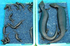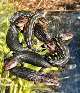 Eighth on the proven morph list are ‘Super Striped’ Alpine Blotched Blue Tongues which originate from an animal I picked up from the late Rob McCarthy and proved out to be a classic clear cut incomplete dominant trait with quite striking visual hets showing a ‘red racing stripe’ appearance and a super form that takes on a fine pinstripe appearance which is virtually melanistic. Photographs of these animals simply go nowhere near expressing how stunning they truly are. The further opportunity with these animals lies in tandem with a line of Axanthic blotchies which proved out in the 2018 season and represent the ninth and final (for now !!) proven bluey morph.