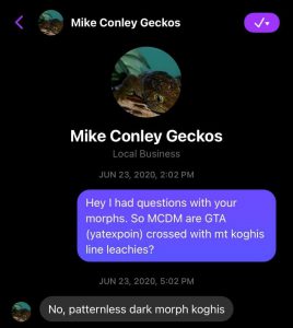 MTK在美国有MT.Koghis DM (Dark Morph)的品系存在,其个体和后代体色都比较深,而在欧洲没有MTK DM的这样表述,因为大部分欧洲MTK的个体体色都比较深(不是绝对,也有体色浅的)。
