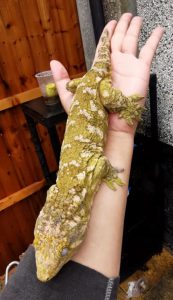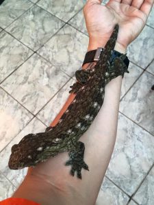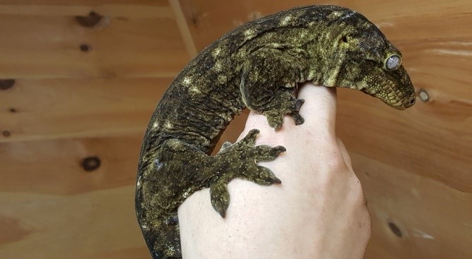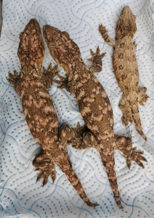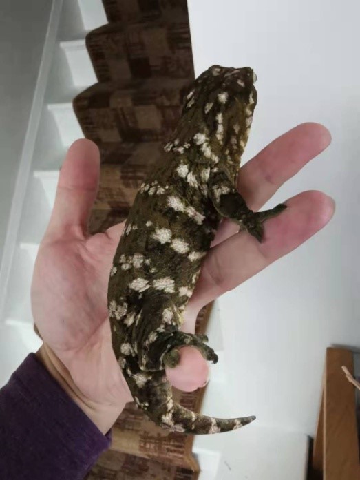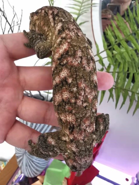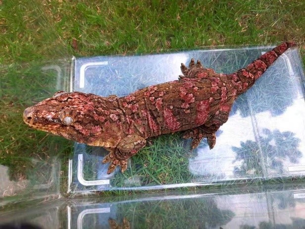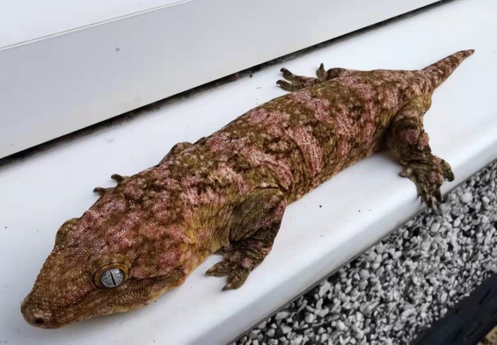 视频一家人住在主岛南部靠近Koghis山经营着一家山道滑索项目,这是他们发现的一只野生巨人守宫成体,很可能是MTK品系。