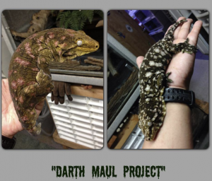 我们所知道的史蒂文选育的著名巨人品系达斯摩尔(Darth Maul)据说是从PDV(Philippe de Vosjoli)得到的主岛红斑巨人品系选育得来的,而达斯摩尔母本是一只纯MT.Koghis。