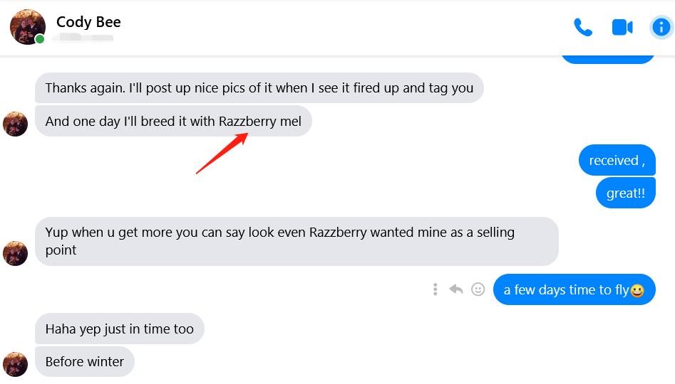 也许是正是这个原因,Cody 他又从我手里收了一只黑化母MTK Friedel巨人,计划和他的覆盆子巨人交配,选育出新血系-黑化覆盆子,这个还是比较令人期待的。