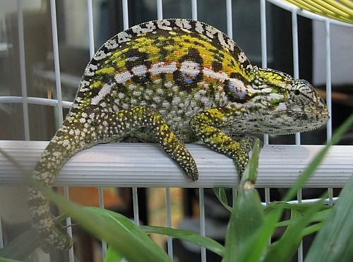 高冠变色龙可以说是最能适应人工饲养环境的变色龙,头顶由骨板构成的高耸如高帽般的头冠被认为是用来在沙漠晚间的雾气中凝结和收集水分。