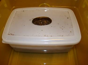 我发现潮湿的躲避处是豹纹守宫特别喜欢居留的地方,即便它们不在蜕皮的情况下,在箱子里安置一个潮湿的躲藏处后,你发现大多数时候它们会安稳的在里面过自己的小日子。这个躲藏处可以使用塑料容器,日用品市场里的饭盒和保鲜盒是一个不错的选择。在容器的盖子上开一个供其自如出入的一个洞口,然后放入泥煤苔或者椰土,这样一个简单的能够提供湿度的躲藏盒就完成了,同时还能在产卵期作为一个产卵盒使用。记住:是潮湿而不是湿润,这里面的度要你自己感觉衡量把握了。