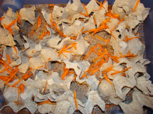 蠕虫类的食饵被吸收的部分属于内脏器官,所以它吃得什么决定豹纹守宫也会吃到什么,一般除了谷物外,你还需要放一些胡萝卜以及其他的蔬菜供给它们水分。并且需要留意温度,适合它们生长的温度范围是23-25℃,低于这个范围,面包虫会萎靡,高了则会大片死亡。