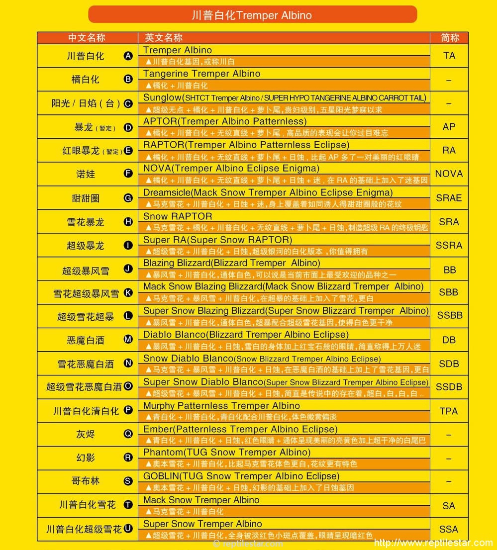 对应各个名称,分别给对应品系守宫图片编号,大家可以查看直观的样子和品系特征(感谢奥本和网友的贡献素材)