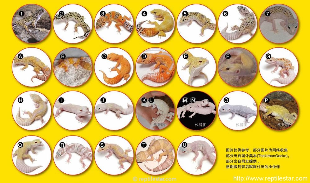 非常感谢百度贴吧《豹纹守宫》的美女管理‘果酱’提供如此美观和清晰的对照图。