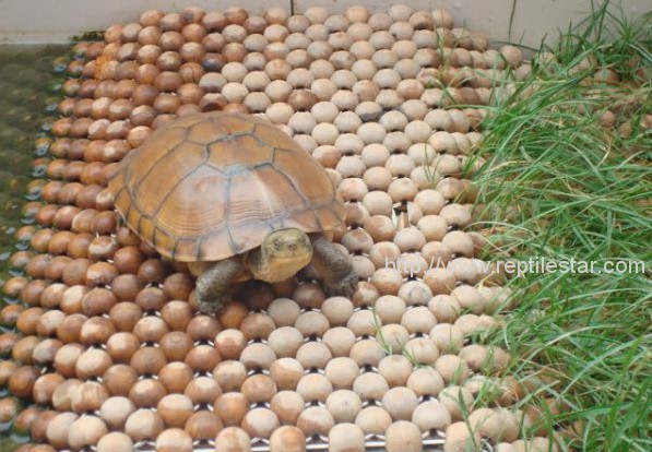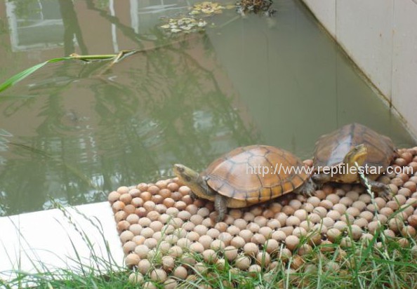 饲养空间一大,龟的活动量也大,食欲 也更旺盛。除了晒背睡觉外,剩余的时间龟全用在满池觅食上。