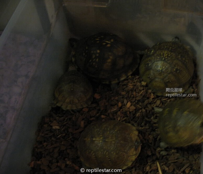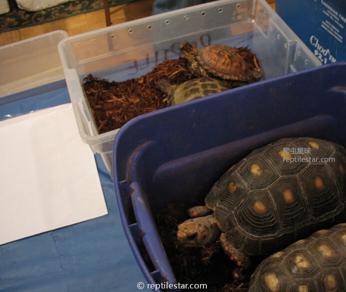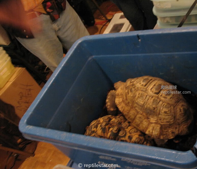 豹纹陆龟,其中一只塌背粘甲的厉害