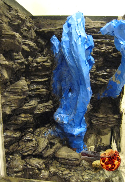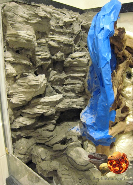木头背后的部分可以多挖几个孔,以后用来放植物,这个位置放一些植物会显得非常自然。接下来砂浆快要干燥的时候再打磨一遍,不齐掉落和裸露的地方,同时可以刻画一些水流的走向,叫水流可以流经背景。