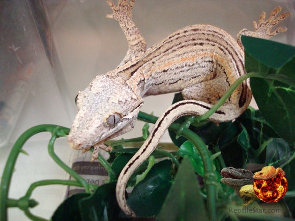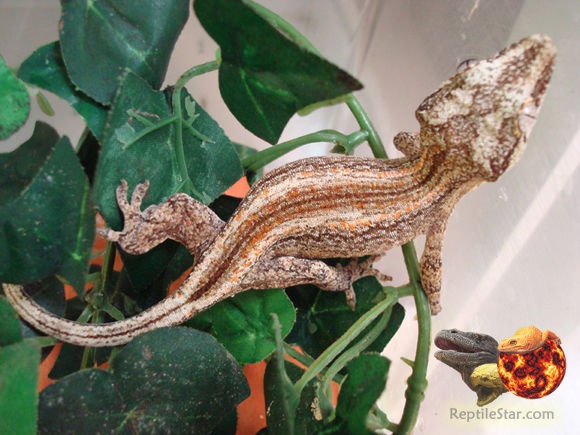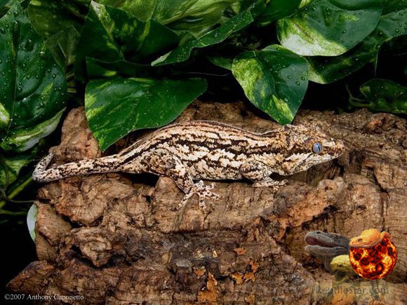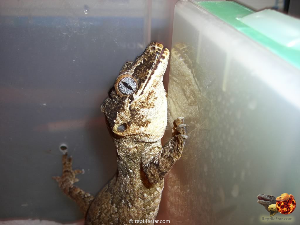 小盖的学名是Rhacodactylus auriculatus,原产地在南太平洋新喀里多尼亚。布置环境时可以模仿睫角的环境,不过小盖比较喜欢在饲养箱下部活动,所以上面不需要太复杂~