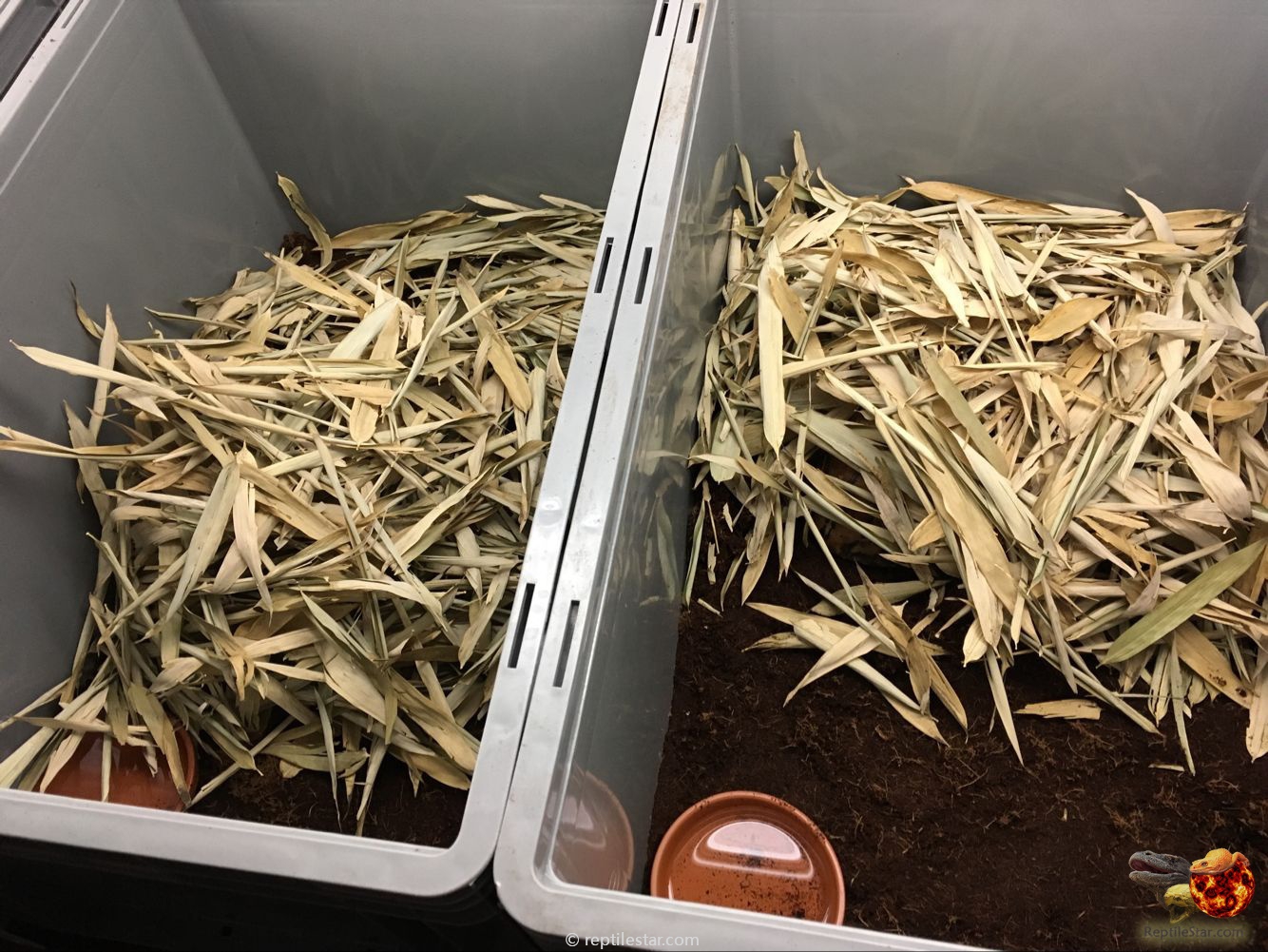 饲养箱的垫材Jam推荐竹叶或者水苔,它们的优劣都很明显: