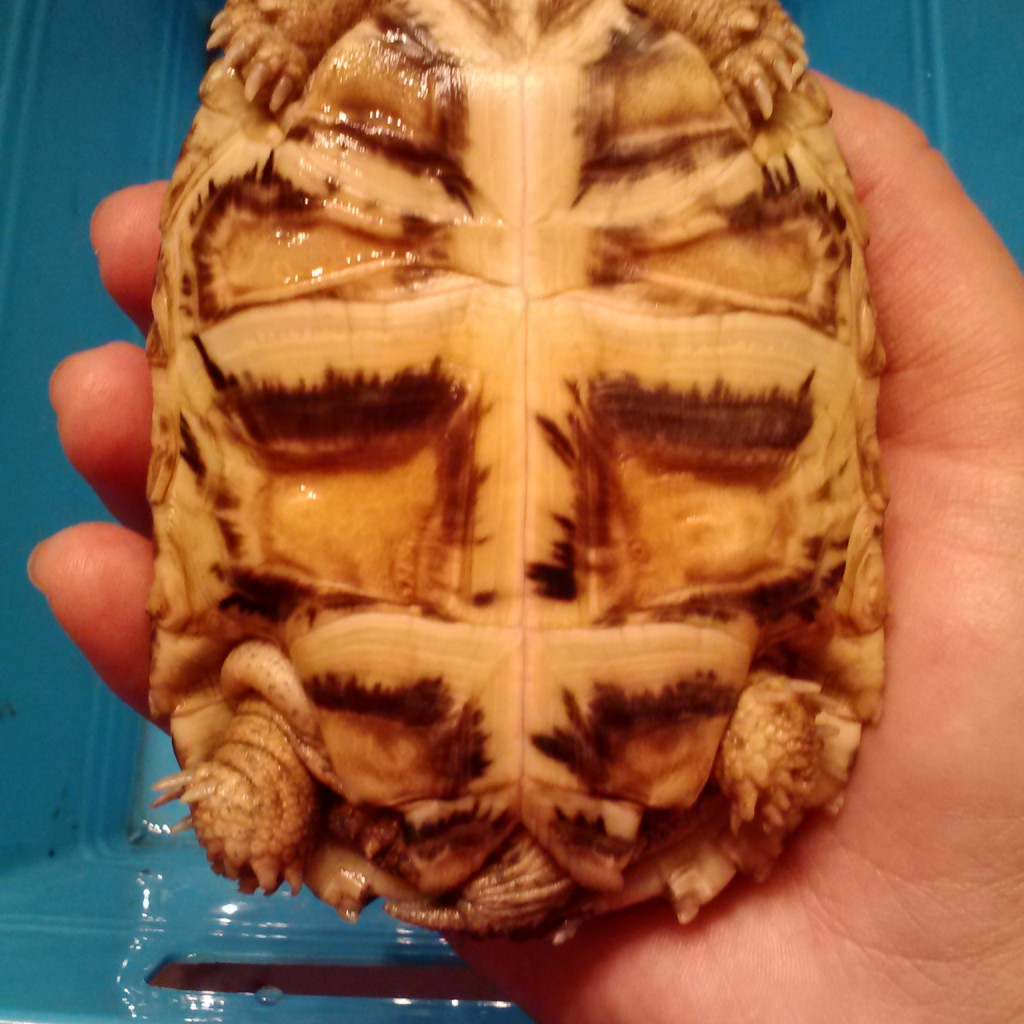 来看看它的腹甲,基本确认是个小帅哥了(拍照的时候还不是很确定,反过头来看照片确实是男子汉的特征)