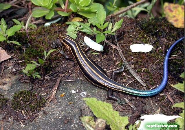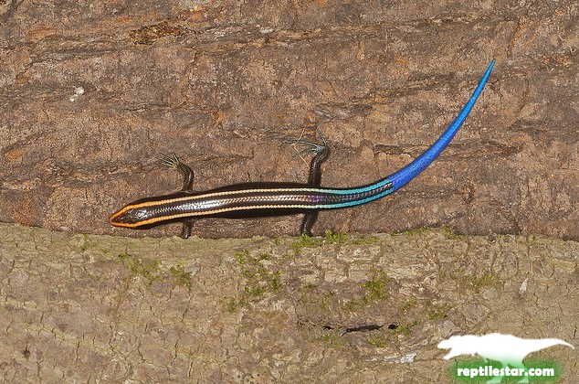 蓝尾石龙子/五线或丽纹蓝尾(英文名:Five-striped blue-tailed skink,学名:Eumeces elegans)
