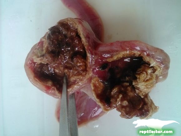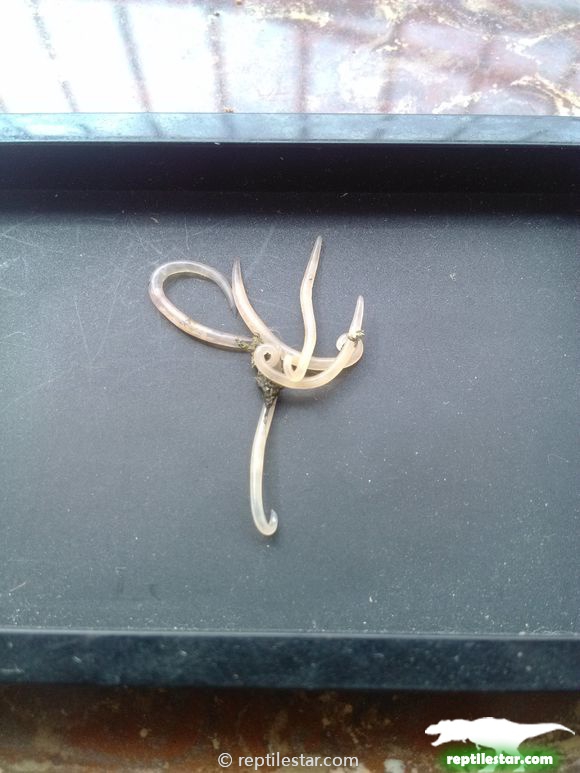 消化道内寄的情况在下山龟身上不是什么新鲜事了,日常可见的品种当中,缅甸陆龟出现小货到内寄爆发的概率最高。内寄通常是白线虫,虫体肉眼可见,大者虫体直径可超过一毫米,长度可超过八厘米。另有褐色有足寄生虫,较为罕见故不详述。