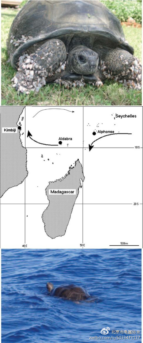 第一只被正式文献记录的漂洋过海的陆龟,(《The first substantiated case of trans-oceanic tortoise dispersal》Journal of Natural History, 2006; 40(41–43): 2403–2408)从塞舌尔群岛漂流了整整460英里到了坦桑尼亚海岸Kimbiji。根据牠腿上藤壶和贻贝的体型估算出这只陆龟已经在海洋里至少漂流了一个月以上