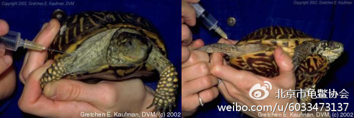 虽然以往提倡避免通过后肢进行肌肉注射和静脉滴注药物,但现今的研究结果显示,这种提倡可能并不具备理论依据。Holtz等人进行的研究结果显示,注射部位不太可能对药物活性造成任何影响,且从药物的代谢途径来谈,爬行动物更适合后半身给药。Beck等人及Holtz等人皆发现前肢与后肢注射庆大霉素(由肾小球滤过排泄),药物代谢并无显著差异。Malley进行的研究显示,后肢肌肉注射时释放的肾上腺素可能会降低肾门静脉系统的血液灌注而使肝循环增加。但不得不承认的是,此类研究所涉及的龟种有限,尚需更多的研究以进一步了解是否对于不同种龟类的生理状态差异采取不同的给药途径。