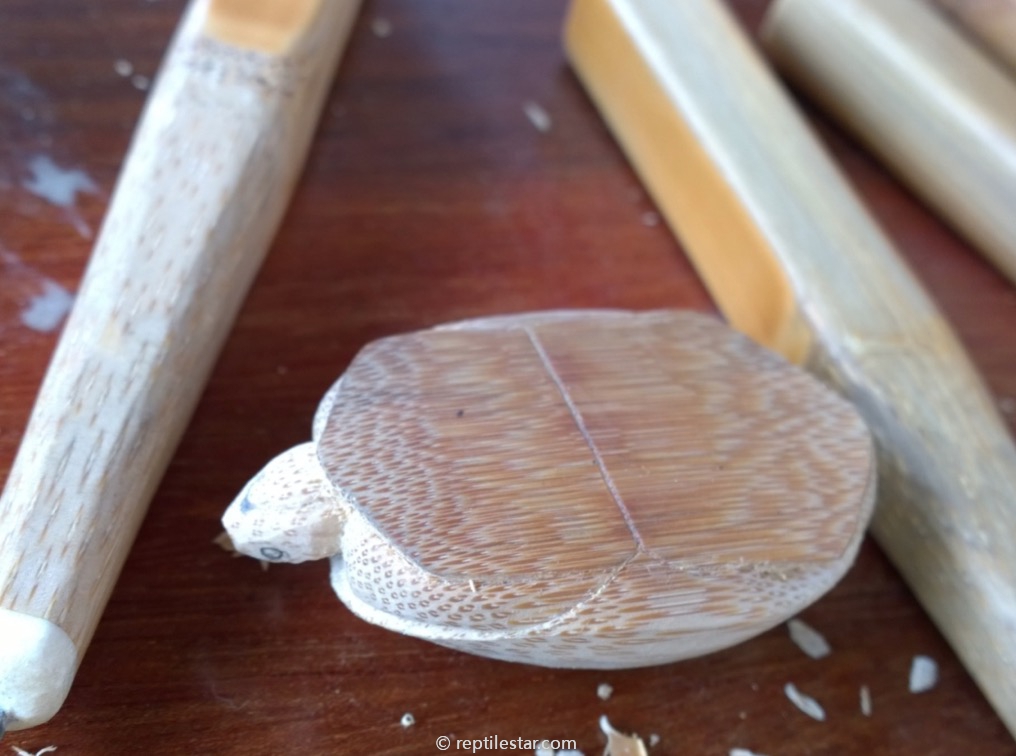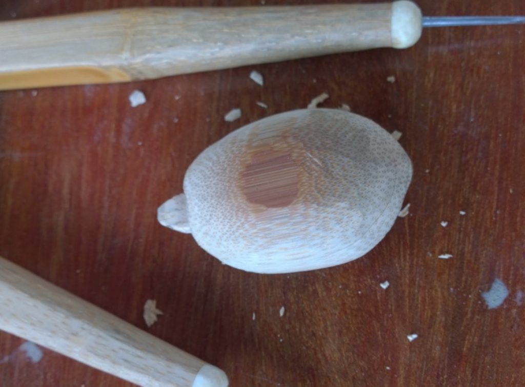 因为竹子厚度限制,稍微拉低了点背,正巧黑腹黄额成体后比较狭长,索性按她成体后的样子来雕刻,同时适当增加头部大小。