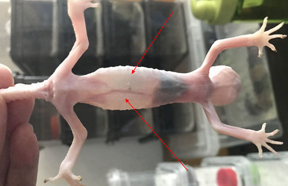 首先借用网上朋友的几张图片直观的看看守宫腹部积水的情况