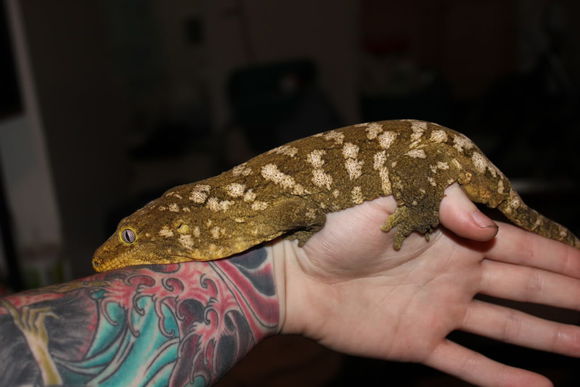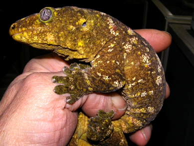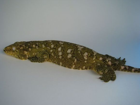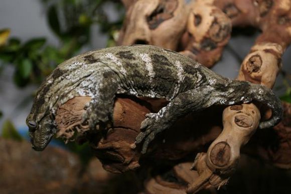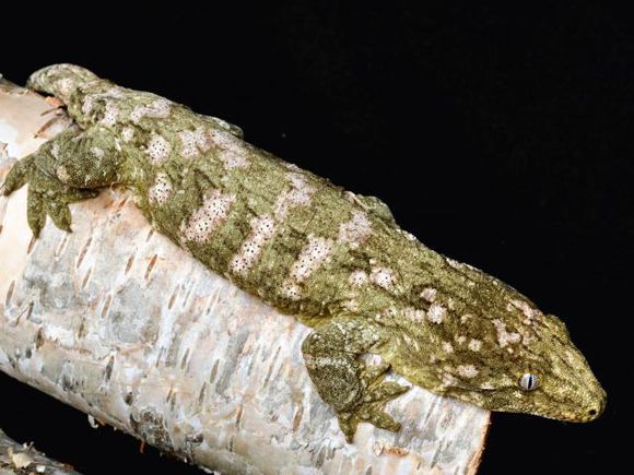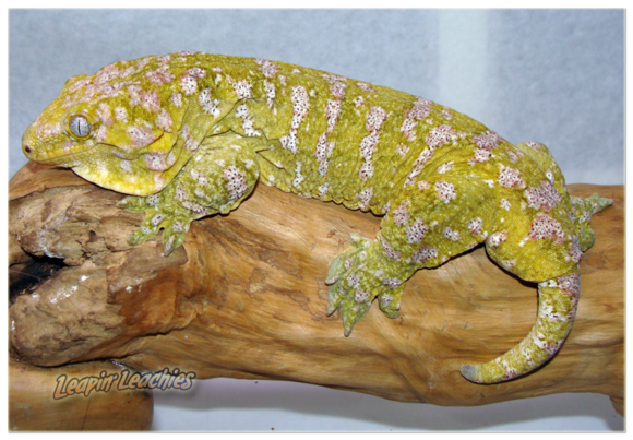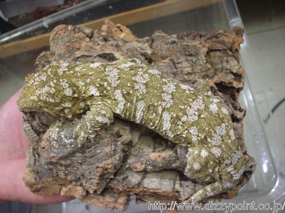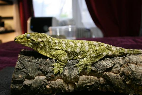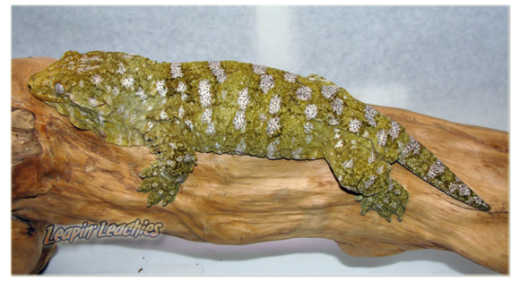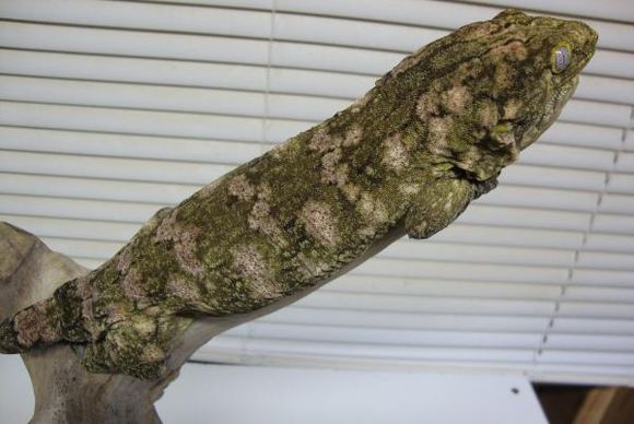 又被称作地衣巨人守宫,以苔藓绿为主色调而得名,伴有或白或粉的花纹(有些背部花纹成”W”状),以及黄色斑点(成体中尤为明显),同Nuu ana一样是巨人一族中的小个子。他的眼睛也是比较有特点的,深灰色的虹膜,网状分布,这点不同于Nuu ana的浅色虹膜。