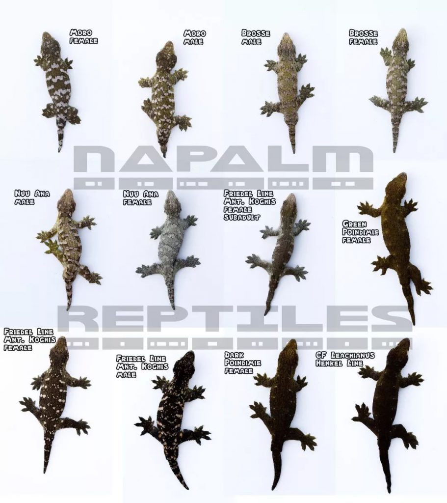 最著名的支岛产地,以鲜艳的颜色和花纹著称。同时也是最小的巨人守宫,非常短的嘴部(母的头型略长),长度在27cm一下,母的更小。
