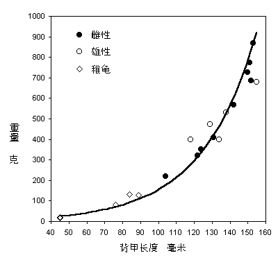 而背甲长度和体重之间的关系则能够用于验证某一特定个体,就其大小而言,是否体重过轻。