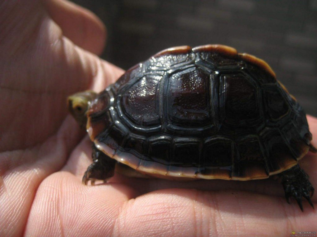这些稚龟就象是成龟的翻版,只是小一些,扁平一些,但尾部相对要长许多。整体的颜色也与成龟相似,然而在许多稚龟和幼龟中,其缘盾和腹甲边缘的黄色区域,有明显的粉红色过渡带。