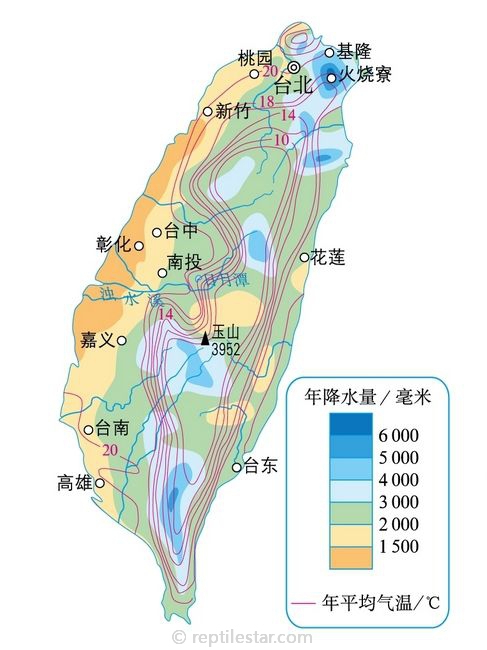高达4450米的中央山系俯瞰着整个台湾岛。其沿海的低地属亚热带气候,冬季凉爽潮湿,夏季炎热多雨。海拔较高的地方则可能终年保持寒冷。