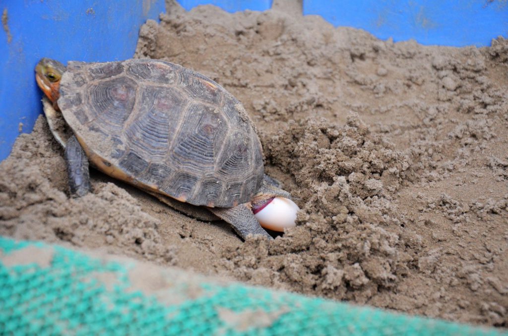 留在地下孵化的龟卵中有两窝卵,其产下的时间是明确的,经过75和90天后,稚龟们破壳而出。