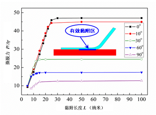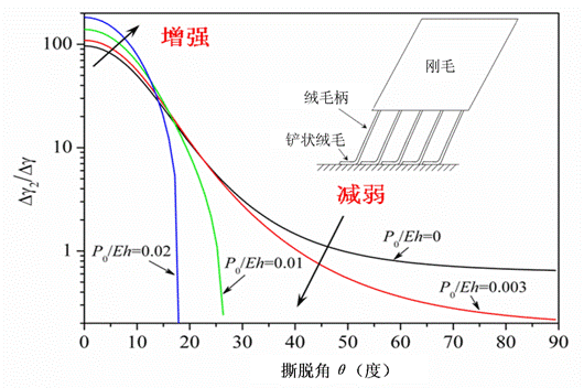 Autumn教授的实验发现:守宫在脱黏过程中刚毛的角度十分重要,唯有在某个临界角度下刚毛才能轻易脱黏。