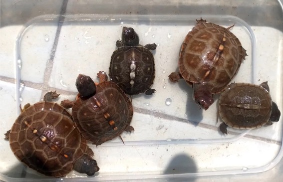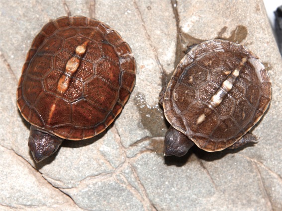 上图为我从苗养起的几只,现在为亚成体,最下面一只已经有很明显的雄性特征。另外的为母龟