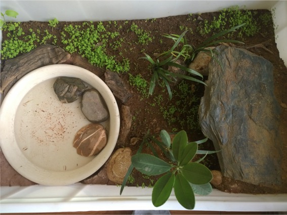 但龟对气味的敏感程度非常高,改变环境时加入以前环境的陈设能起到意想不到的作用。就我的经验,大部分龟在出眠后还是会待在它偏爱的躲避,也会在偏爱的饮水点饮水
