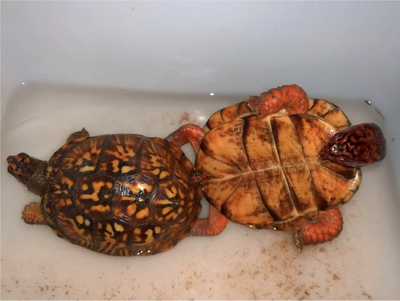 人工饲养的箱龟并不需要繁殖来完善它们的龟生,它们看起来也并不需要其它同类的陪伴才会快乐,尽管雄性箱龟是众所周知的追母狂。