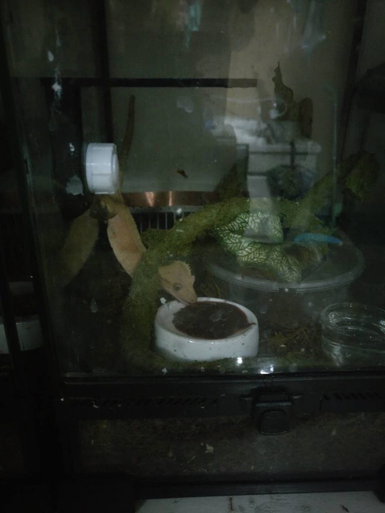 这个时候果泥摄入就有点像给R属守宫摄入综合营养调节剂,往往需要饲主夹着活饵沾着果泥叫守宫吃下去,一般吃个两次就接受了。