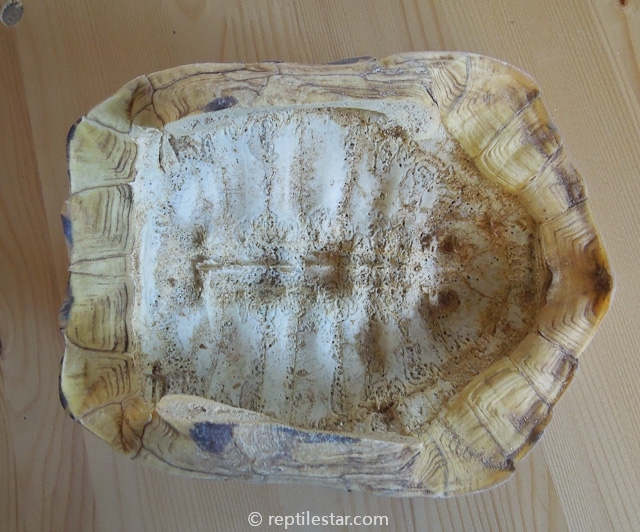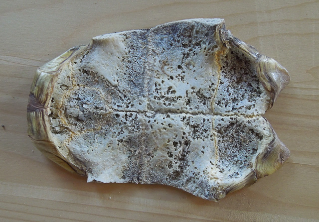 下面的图片深刻揭示了这种病症的可怕,图片分别是野生欧洲陆龟和MBD欧洲陆龟的甲壳解剖图(龟均为正常死亡后获得的样本)。图片均来自tortoisetrustforum.org!