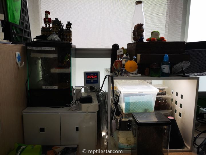 我其实养了一堆守宫,都养在办公室我的格子里面了。守宫的好处是不占地方,好打理。粪便是有味道,经常清理,或者买几块冰箱用的吸附活性炭块,就没事啦。