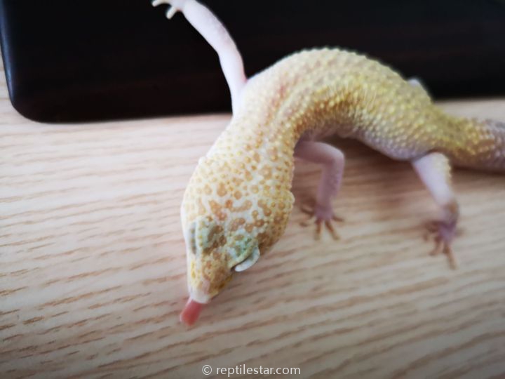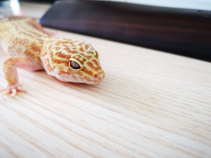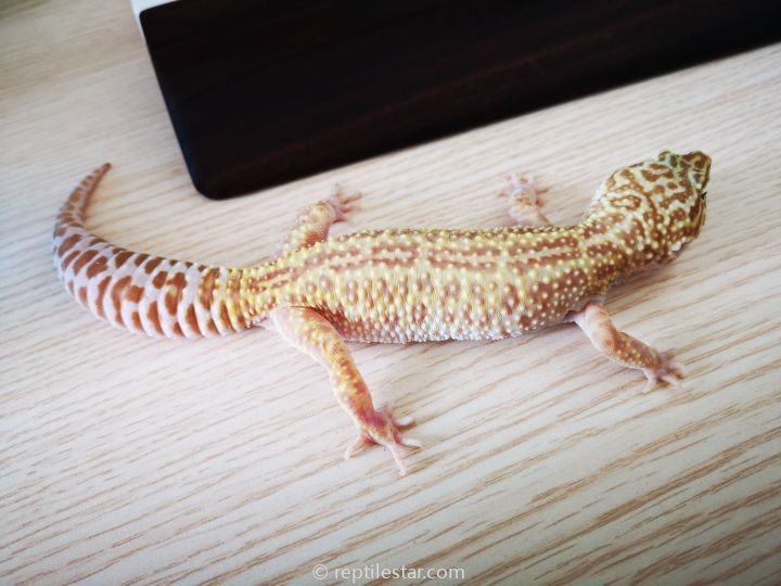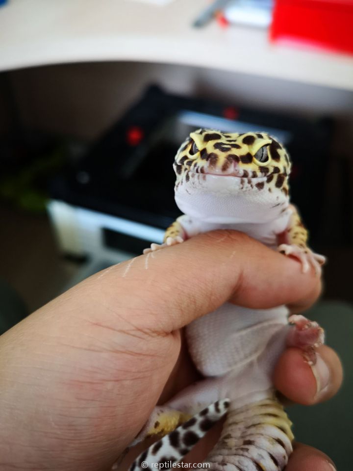 这是我养的最久的豹纹,叫大爷,本科时候买的,那时候豹纹还很贵。只是一个普通的高黄,特别能吃,一年前就已经过度肥胖了。最近一段时间控制了下食物,瘦了一些。