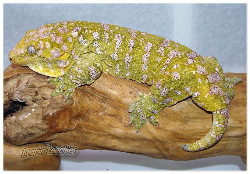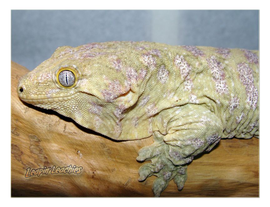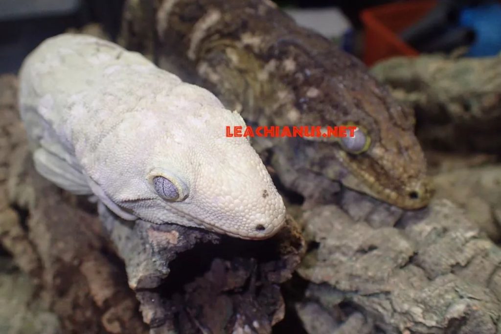 Nuu Ana可以是巨人里最便宜的,也可以是支岛巨人中最贵的。他们有着纷繁复杂的选育,无比绚丽。Nuu Ana的底色与花纹对比度很高,无论深浅都非常明亮,甚至可以说是荧光效果。他们周身覆盖粉白色的花纹并夹杂着黑色斑点,一些个体成年后还有耀眼的金色斑点。有些资料说他们的眼睛里几乎没有网状花纹,但我没看出来······虹膜是”倾斜的“我其实也没看出来。讲真,这家伙的体型与颜色就很标致了。
